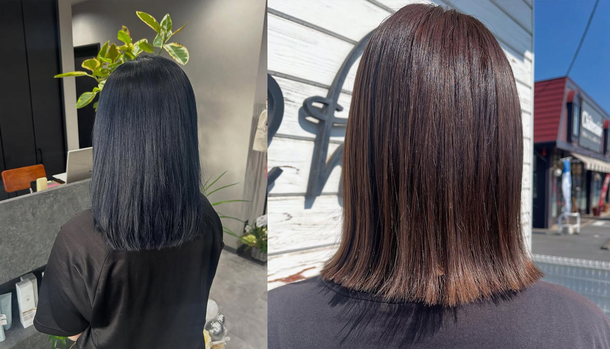 - 縮毛矯正:くせ毛や広がりが気になる方に人気。毛先まで自然なストレートに仕上げる
